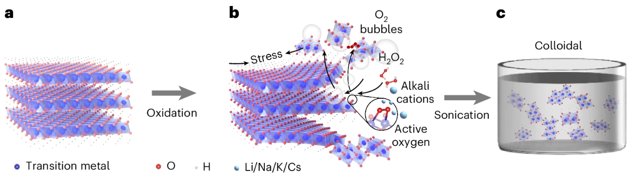 图2. 金属羟基氧化物的拓扑化学剥离原理示意图