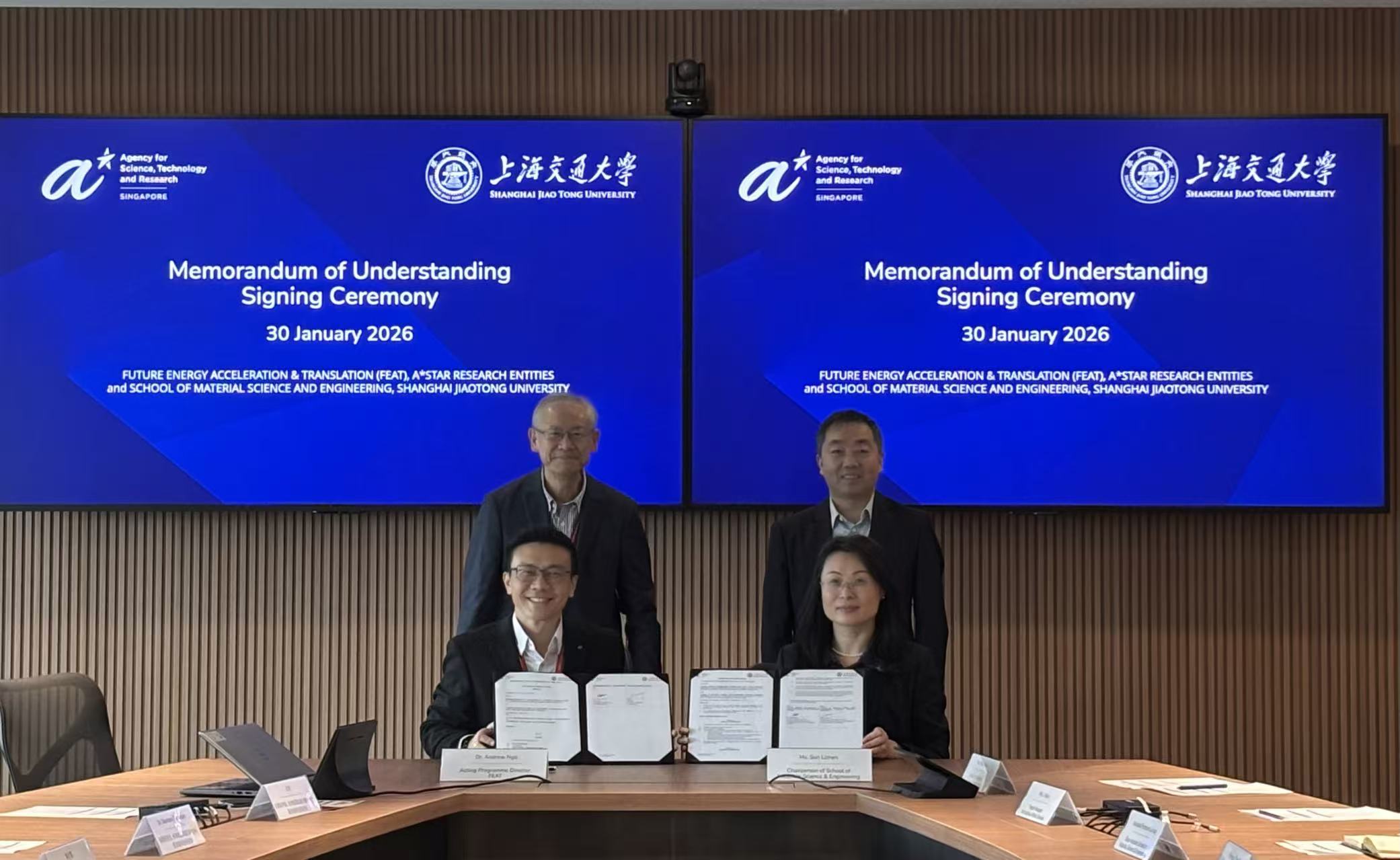代表团访问新加坡科技研究局(A*STAR),与其下属的未来能源加速与转化中心正式签署谅解备忘录。在副校长曾小勤与新加坡科技研究局副总裁贺子森的共同见证下,工口漫画 党委书记孙丽珍与未来能源加速与转化中心主任吴俊勇签署谅解备忘录。双方将围绕面向极端环境的先进材料技术开展联合研发与人才培养,整合双方在材料科学与工程、先进制造及未来能源领域的优势,加速技术创新与转化。